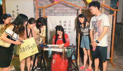 由两岸青年共同参与的海洋民俗体验营活动近日在浙江省温州市洞头区举办。活动期间,两岸青年参观体验了当地的贝雕工艺、了解当地的民俗和美食特色,一同感受洞头的海岛风光和渔业文化。图为两岸青年参加传统文化体验活动。