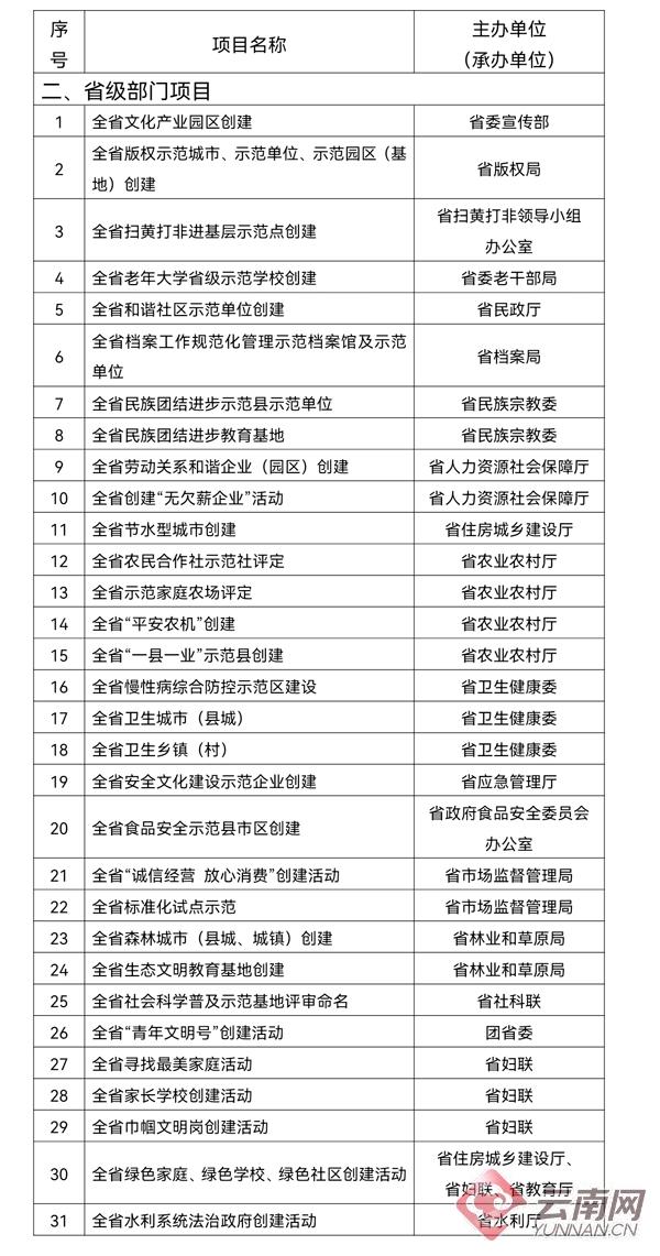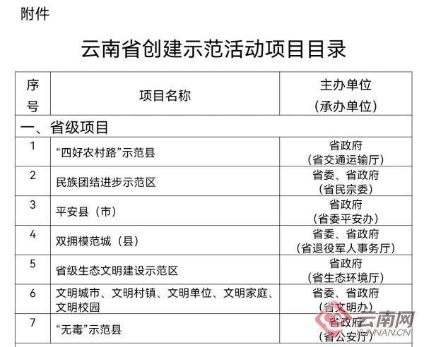 附件:云南省创建示范活动项目目录