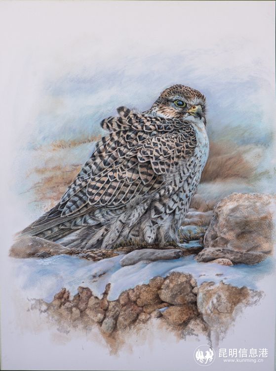 蒋正强,风中的猎隼,纸上综合材料,72x52cm,2022