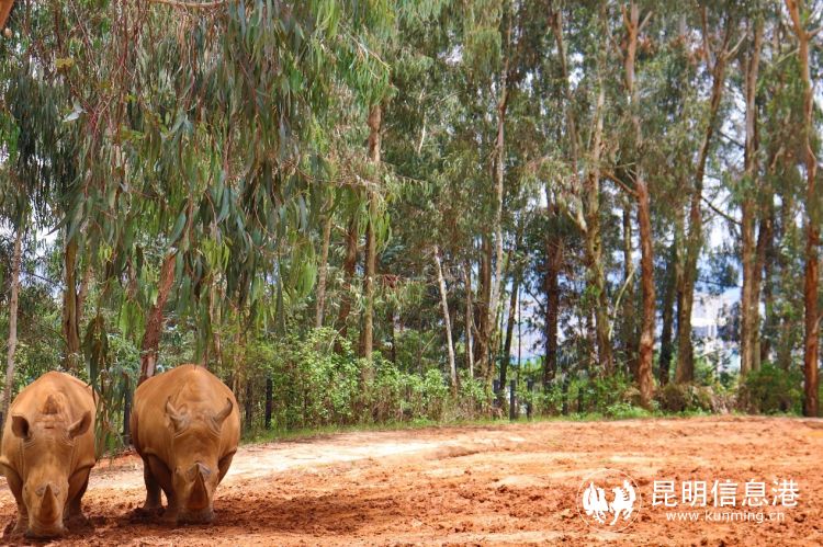 国宝大熊猫喜寒怕热,园区给它们准备了水池、凉快的喷雾系统、水果冰块等供它们消暑。白犀牛和长颈鹿的老家在非洲,但它们儿时就在云南野生动物园长大,已经是地道的 “昆明牛”和“昆明鹿”了。为了避暑,犀牛找到保育员给它准备的泥潭,来一场它最喜欢的泥巴浴,至于个头超过6米的长颈鹿,一把遮阳伞更加适合它们。
