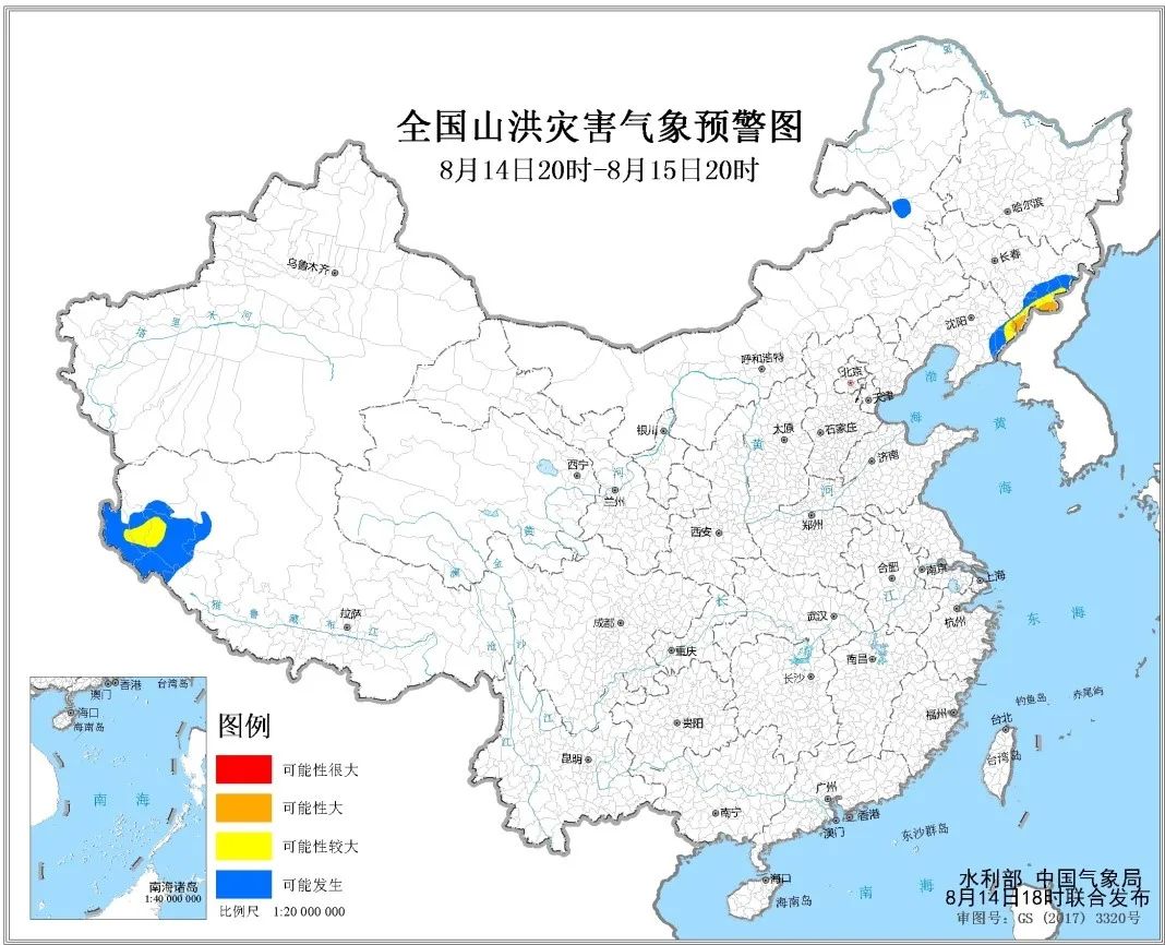 水利部和中国气象局8月14日18时联合发布橙色山洪灾害气象预警:预计,8月14日20时至8月15日20时,辽宁东部、吉林南部、西藏西部等地部分地区发生山洪灾害可能性较大(黄色预警),其中,辽宁东部、吉林南部局地发生山洪灾害可能性大(橙色预警)。其他地区也可能因局地短历时强降水引发山洪灾害,请各地注意做好实时监测、防汛预警和转移避险等防范工作。