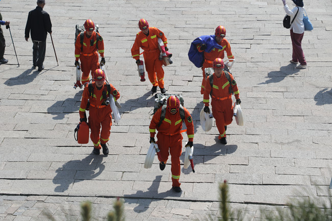1996年,第一批泰山消防救援站救援人员登上泰山,借住在后山北天门的空军雷达站,开始对这座大山26年如一日的守护。他们组建了岱顶防火巡查服务队,主动上门为单元员工进行培训,在游览区为游客介绍山林防火知识要点。肩负起18万亩山林、26处古建筑群、58座寺庙、42家社会单位的防火、灭火工作和消防救援任务。