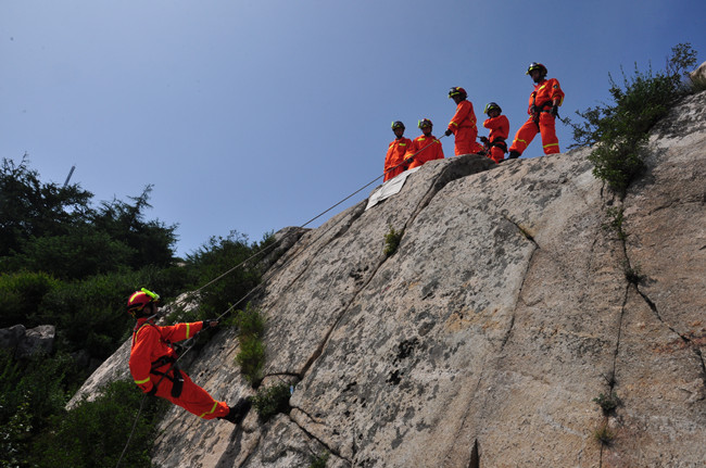 开展山岳救助训练。泰山消防救援站供图