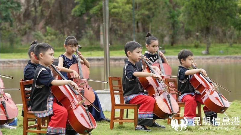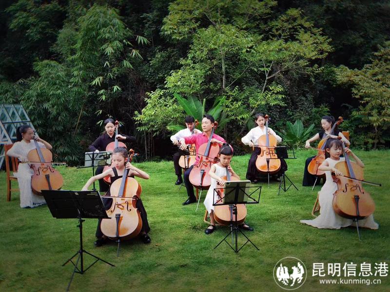 昆明信息港讯 8月13日,松赞集团携手著名大提琴演奏家、中央音乐学院教授朱牧,和身着云南特色民族服装的云南姞美爱乐乐团孩子们,在普洱亚太森林组织基地的湖畔演奏了多首世界名曲,打造了一场直击心灵的森林音乐会,为市民和游客带来了不一样的视听盛宴。