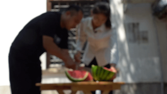 闫春光的奶奶负责烧饭,与红薯较劲。