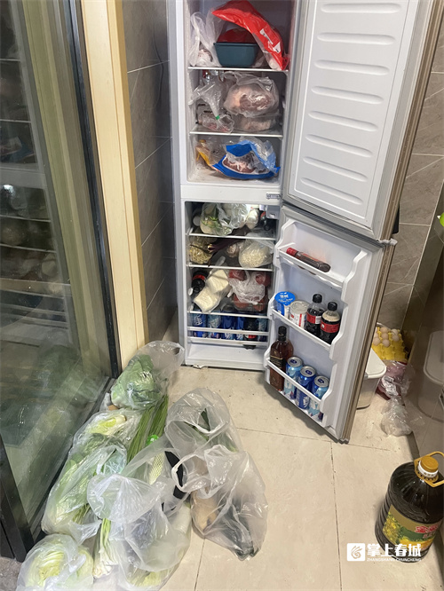 6栋302居住了10个在医院实习的大学生们,“这是学校统一安排的宿舍,因为疫情,我们都被封在了一起。”302的王阳说道,由于人数比较多,政府前一天发的蔬菜、肉类等物资已经所剩不多了。