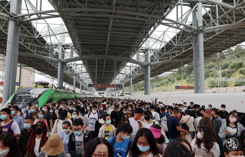 广通车务段保山站站长鲁建丽介绍,大瑞铁路大保段运营一个月,正值暑期旅客运输旺季,保山站旅客发送量连续三次创新高——7月25日达4800多人次,7月30日达5600多人次,8月13日达7800多人次。安全、舒适、快捷的动车出行方式受到群众欢迎,漾濞站、永平县站、保山站等三个客运站皆持续呈现客流高位态势。