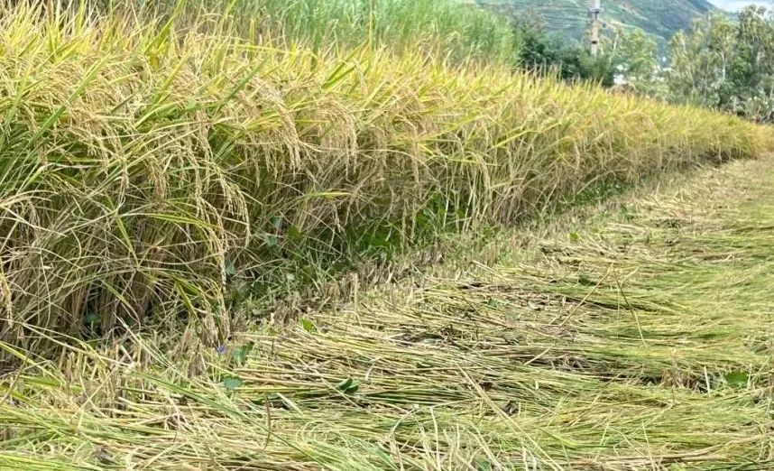正值金秋时节,乌龙镇大面积的软香水稻已经开始全面收割,成片的稻田里,一串串金黄的稻穗、一颗颗饱满的稻谷,呈现出一幅幅乡村振兴的画面。