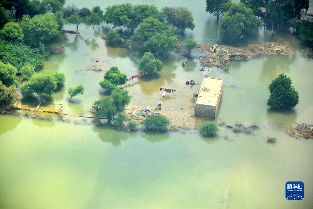 这是9月3日在巴基斯坦俾路支省航拍的洪灾现场。6月中旬以来,巴基斯坦空前猛烈的季风降雨引发洪灾。新华社发 阿萨德/摄