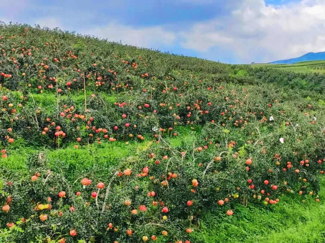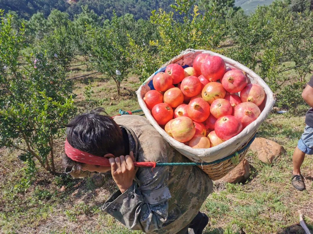 金秋9月,又到了软籽石榴的成熟季节,走进丽江市永胜县片角镇全国“一村一品”示范村卜甲村的软籽石榴生态种植基地,一排排石榴树结满硕果,一颗颗火红的软籽石榴的缀满枝头,种植户们正背着背篓忙着采收。