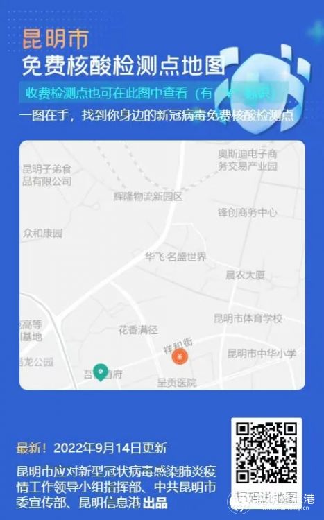 除此之外,结合疫情防控需求,今年8月以来,全市各县区,尤其是主城区增设了大量临时检测点位,目前昆明市临时免费核酸检测点位共计千余个,这些点位均不设置在《昆明市免费核酸检测点地图》上,增设的临时点位将依据群众检测需求继续保留,群众可关注各县区发布的临时点位信息,也可向所在辖区或社区进行咨询。