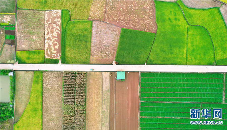 云南省弥勒市弥阳街道办事处,秋天的田园美如画卷(9月16日摄)。新华网发(普佳勇 摄)