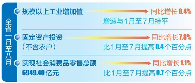 9月19日,省统计局发布数据显示,1月至8月全省经济持续恢复,主要经济指标平稳向好。