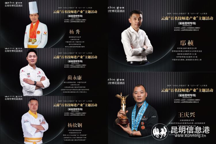 昆明信息港讯 记者江枫 9月22日,“云南人才服务月·百名技师进产业”省级第二场主题活动在昆明隆重举行,鄢赪、王庆兴、杨升、蔺永康、杨松钢等5名“兴滇英才支持计划”首席技师走进云南世博花园酒店,为文旅行业从业职工讲述了一堂“煎炒烹炸共聚、色香味形俱全”的工匠故事。活动由云南省人力资源和社会保障厅举办,主题是“人才服务助力云南高质量发展”。