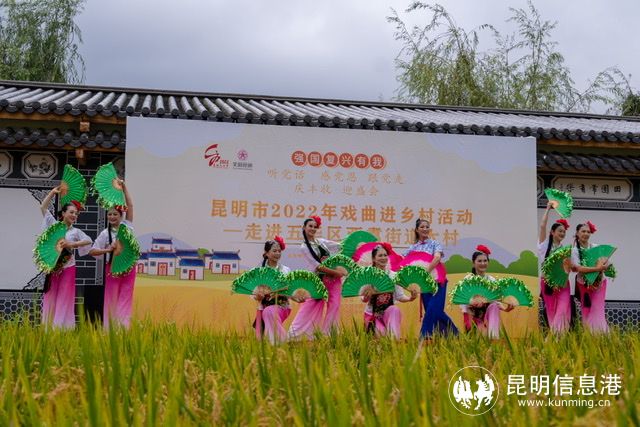 庆丰收、迎盛会,稻田唱戏曲!9月23日,正值2022年中国农民丰收节到来之际,秋风送爽的“麦和稻田”农庄里,昆明市2022年戏曲进乡村活动走进五华区西翥街道大村社区。活动旨在积极弘扬优秀传统文化,一起庆丰收、迎盛会、感党恩。