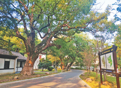 在“春晖中学校”老校门左侧,就是闻名遐迩的白马湖。白马湖并非一个湖,而是曲曲折折大大小小许多湖的总称。大大小小的湖错落分布,村落、岛屿、沙洲镶嵌其中,美不胜收。(范文忠 楼丽君)