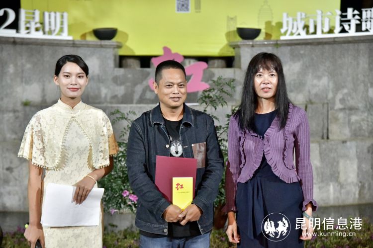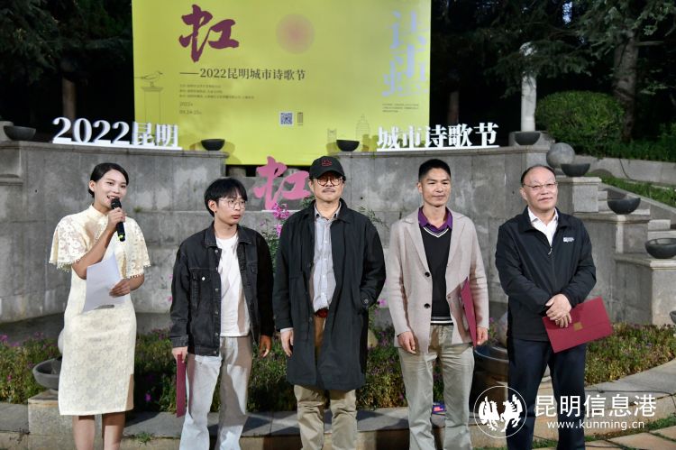 昆明信息港讯 记者王奕然 “我宣布,‘虹——2022昆明城市诗歌节’顺利闭幕!”9月25日晚,随着大益文学院院长陈鹏宣布闭幕,“虹——2022昆明城市诗歌节”在昆明世博园上海明珠苑落下帷幕。闭幕仪式上,公布了“褐石杯”征文大赛获奖结果,共有6位来自云南各地的诗人获奖。