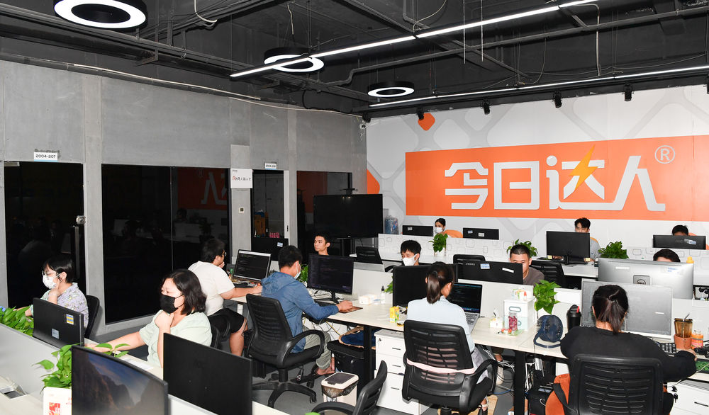 海口复兴城互联网信息产业园内一区,海南今日达人网络科技有限公司员工在办公(9月29日摄)。新华社记者 杨冠宇 摄