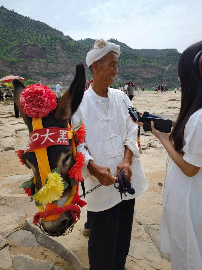 这是吉县中市村村民赵三管,每天早上他都拉着自家毛驴来到壶口瀑布景区“上班”,供游客摆造型拍照片。新华社记者 吴炜玲 摄