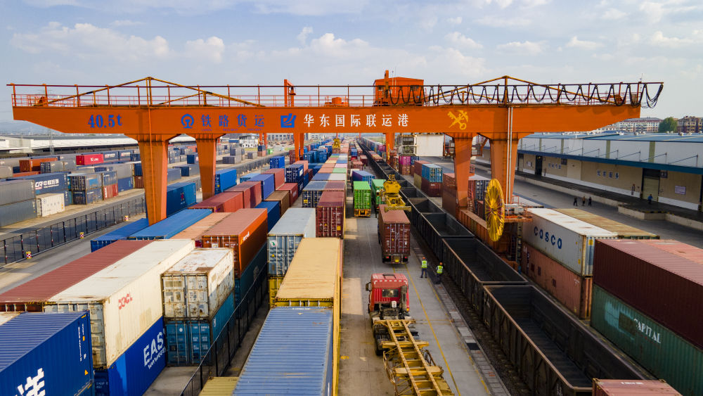 金华南站货场内繁忙的装车景象。(受访者供图)