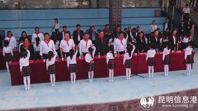 活动现场,少先队员们佩戴红领巾,齐声高唱少先队队歌《我们是共产主义接班人》,在队员代表的带领下,少先队员们立下铮铮誓言,为共产主义事业而奋斗的声音在校园内回荡。