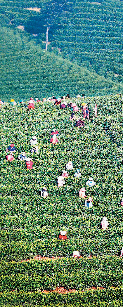 已是深秋,黄杜村里绿意依然,万顷生态茶园如诗如画,一垄垄茶树株距宽窄有致。放眼望去,一条条茶带随山势蜿蜒,一条有一条的风景,一带有一带的韵味。