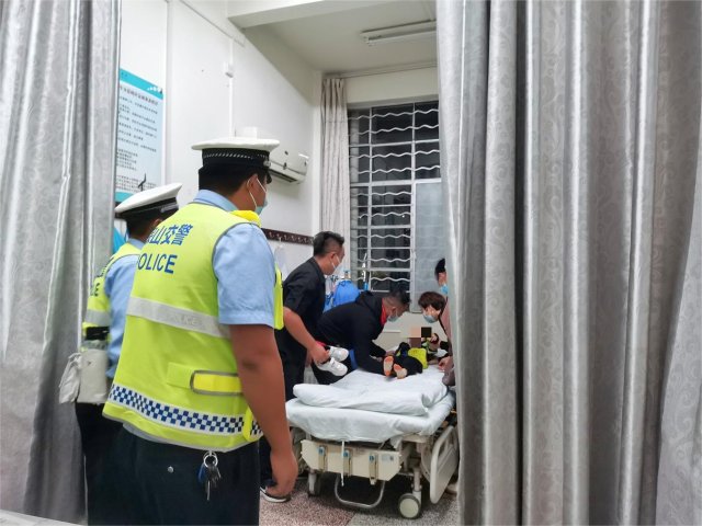 当晚9点30分左右,该大队接到群众报警求助称:小孩食物中毒,已经在保山市人民医院新院区进行了紧急催吐,现在需要到人民医院老院区进行进一步检查救治,希望交警帮忙开道。