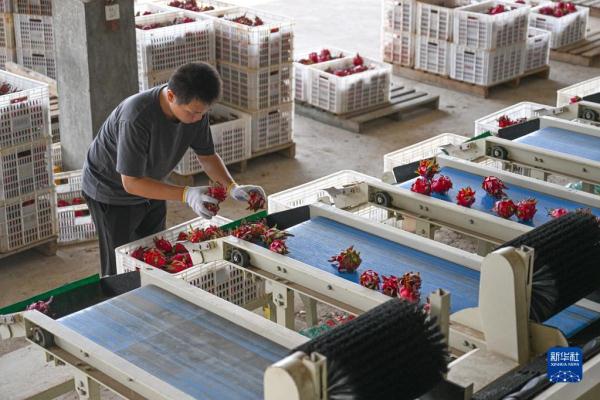 近日,海南省东方市火龙果种植基地进入采收期,田间一派丰收繁忙景象。近年来,东方市因地制宜,按规模化、标准化、品牌化的发展思路打造火龙果种植基地,火龙果产业已成为当地农业主导产业。