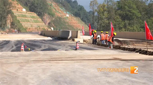 昆明昆倘高速公路投资发展有限公司总经理 张鹏:“目前我们主要是在进行路基交验、路面施工以及房建、交安、机电和绿化施工,预计今年年底能够达到完工通车条件。”