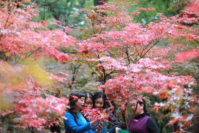 黑龙潭公园是昆明著名的赏枫胜地,经过多年的发展,红枫岭已成为公园的秋色景观核心区,游客只需沿公园主游路,途经龙泉观、龙泉探梅广场,拾级而上就能到达红枫岭。