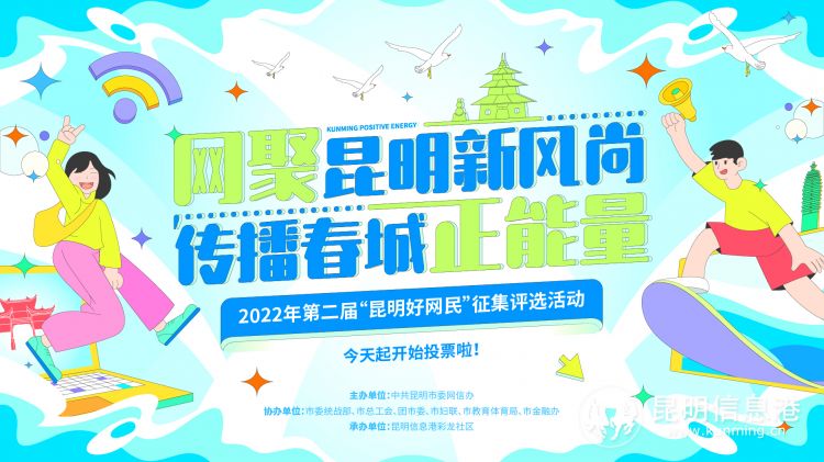 本次活动由中共昆明市委网信办主办,昆明信息港彩龙社区承办,以“网聚昆明新风尚,传播春城正能量”为主题,一经上线就受到了广大网民的关注。截至申报结束,通过组织推荐、网络推荐、个人自荐三大渠道共计收到正能量网络作品、好网民故事稿件300余篇,全网点击量超过三百万。经组委会初选,共计72名好网民代表进入网络投票阶段。