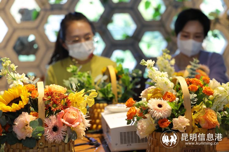 活动现场由首批“城市花房”中的时时刻刻派出花艺师,向“春城花都体验官”专业细致地讲解了鲜切花及花艺的相关基础知识,包括如何选购、如何养护鲜切花,如何进行花艺构图。在花艺沙龙体验环节,30名体验官们在花艺师的细心指导下,结合自己的审美观,现场体验鲜切花花篮创作,在秋日中感受春城昆明独有的的浪漫,每一个人都带着自己DIY的“鲜花花篮”满意而归。之后,体验官们将再通过两场线下主题活动,体验并完成“春城花都体验官”的相关宣传工作。