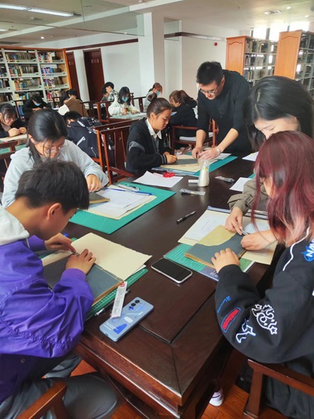 “更换封面时,先用刻刀沿书脊切去旧的定装线”“大家修复过程中一定要注意保护书页”……课堂上,老师们不厌其烦地纠正学生的错误操作,强调注意事项。填表、拆线、清理灰尘、添加或更换封面、定线,每一步操作都谨慎对待。