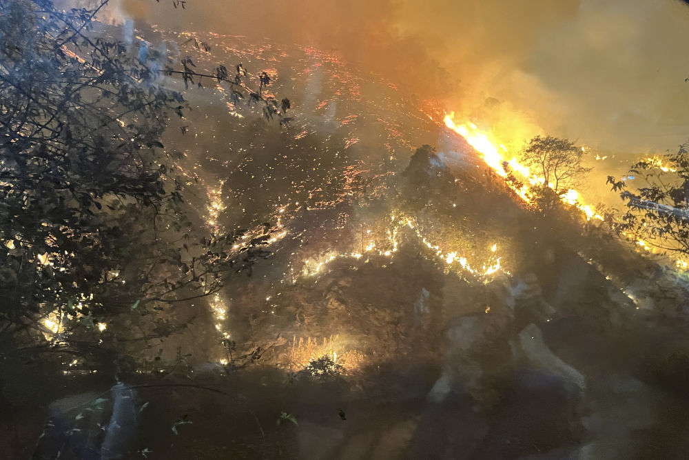 这是湖南省永州市新田县森林火灾现场(受访者供图)。