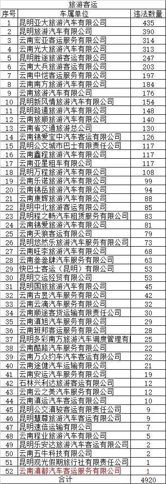 10月29日,记者从昆明交警获悉,10月集中曝光一批“突出违法车辆、典型事故案例、高危风险企业和终生禁驾名单。其中,网约车车辆违法情况有所减少,但旅游客运违法数量有所抬头。