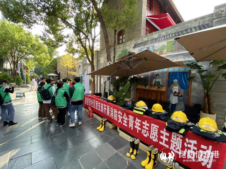 在现场,景星街社区将与云南财经大学联合成立了2支志愿服务队。随后,景星街社区团支部组织2支志愿队伍到昆明老街共同开展消防安全青年志愿主题活动和昆明老街文旅解说志愿活动,青年志愿者们向辖区商户和居民们宣传了消防安全知识,发放宣传资料百余份,还亲身体验了试穿消防服及如何使用消防安全相关器材。