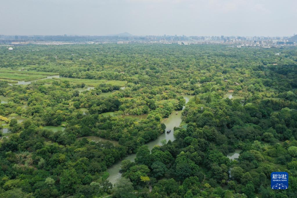 2020年8月22日拍摄的西溪国家湿地公园(无人机照片)。新华社记者 黄宗治 摄
