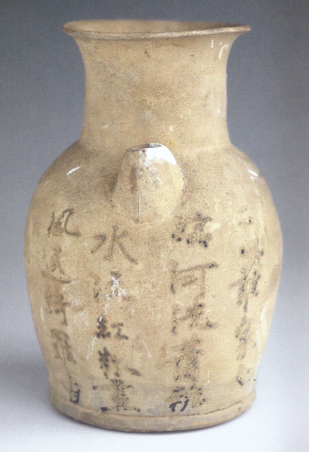 青釉褐彩“自入新峰市”诗文壶。长沙博物馆供图