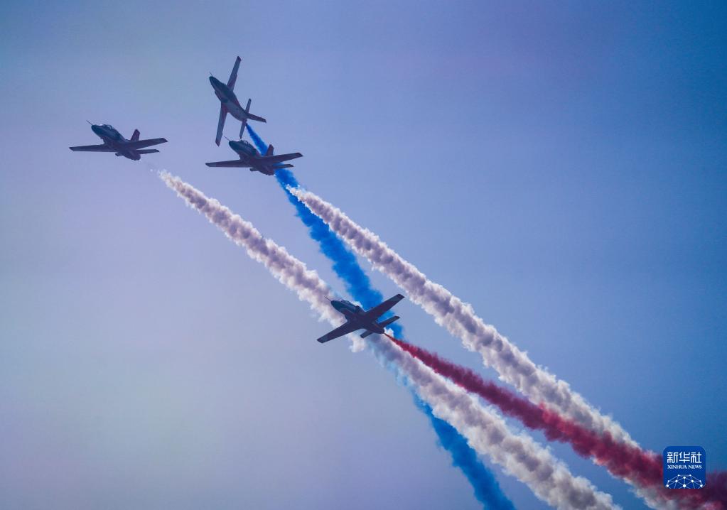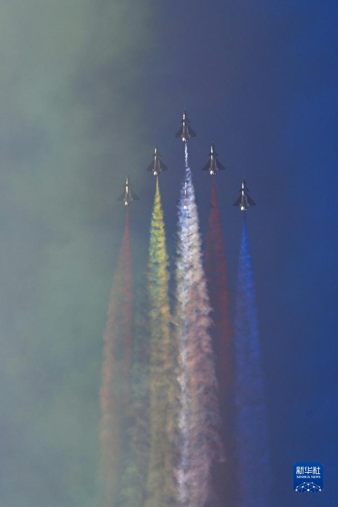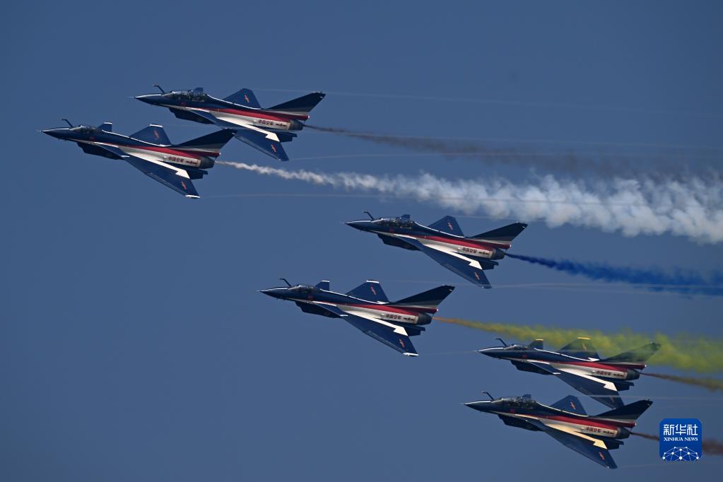 11月13日,第十四届中国航展闭幕当天,空军八一飞行表演队进行飞行表演。新华社发(余红春 摄)