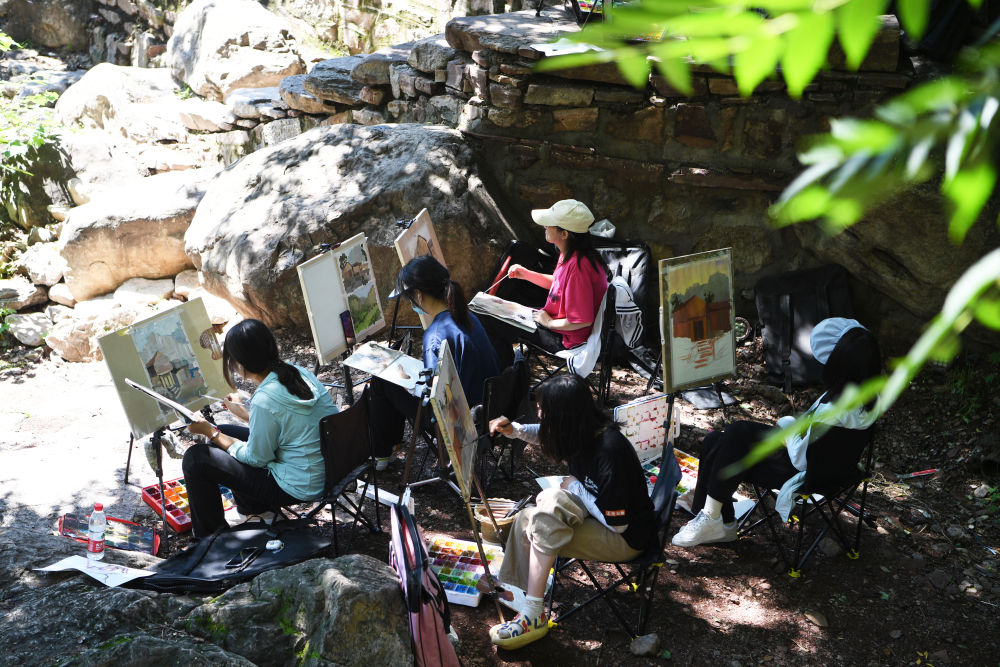 学生们在河南安阳林州市石板岩镇高家台村写生。 新华社记者 张浩然 摄