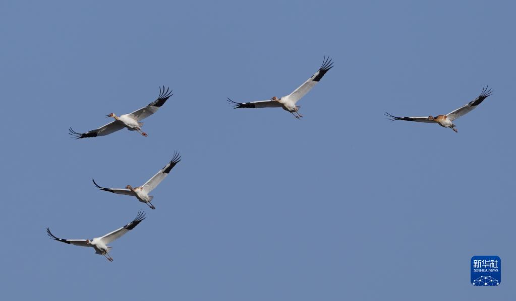 11月10日,白鹤在南昌高新区五星白鹤保护小区飞翔。新华社记者周密/摄