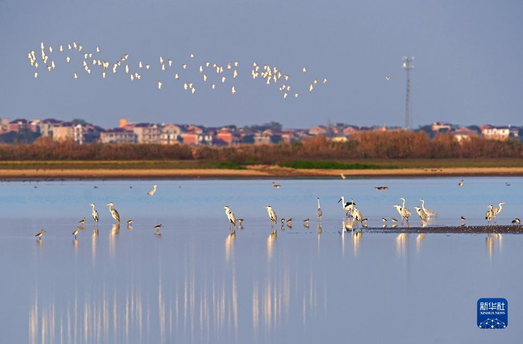 11月11日,一群水鸟在江西鄱阳湖南矶湿地国家级自然保护区的湿地栖息。新华社记者万象/摄