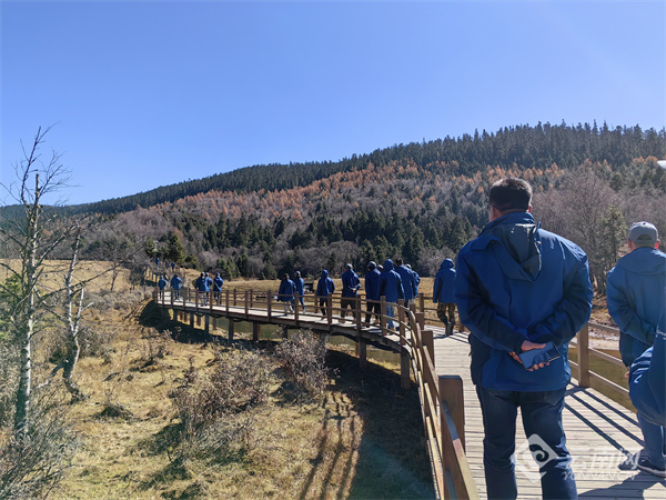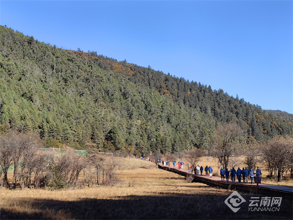 11月14日,第五届“一带一路•七彩云南”国际汽车拉力赛赛事车队驶进迪庆州香格里拉市普达措国家公园,观山水林田湖草,游生态景观人文景观,观览普达措国家公园的自然生态保护,感受云南卓有成效的生态保护。