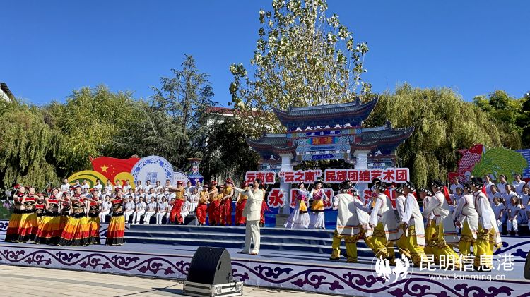 昆明信息港讯 记者张玉玲 伴随着清风、沐浴着冬韵,11月16日,“云之南”民族团结艺术团带着问候和祝愿来到了滇川交界的云南丽江永胜县。本次慰问演出以学习宣传贯彻党的二十大精神为主题,用歌舞、戏曲、小品等群众喜闻乐见的形式,讴歌党、讴歌祖国、讴歌人民、讴歌英雄,表达云南人民“心向北京、拥护核心”的质朴情感,展现“党的光辉照边疆,边疆人民心向党”的壮美画卷。