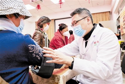 昨天,和平区劝业场街林泉社区联合天津劲松中医院开展专家进社区义诊服务活动,现场为居民群众耐心细致解答各类健康问题,传授防病和冬季养生知识。(今晚报 记者庞剑摄)