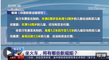 北京交通大学交通运输学院运输管理工程系主任 魏玉光:对于儿童票按年龄算,这些年来群众呼声比较大,这次的调整也是铁路部门响应群众呼声,是坚持以人民为中心的具体体现,也是一项惠民的具体政策。新的《铁路旅客运输规程》,其实是扩大了儿童受益的范围。这些年我国百姓生活水平提升,儿童的身高长得很快。现在我们的技术能够实现实名制,并且能够通过身份证件知道儿童的真实年龄,按照年龄就能让更多的身高比较高的孩子,长得快的孩子享受普惠的票。现在,99%以上的客票都是实名制的,只有很少一部分不实名制。这很少的一部分只是在一些公益性铁路的慢火车上,还有一些短途的市郊铁路上,因为设备设施或车上的一些条件,暂不具备实名制的条件,其实这些影响是非常小的。