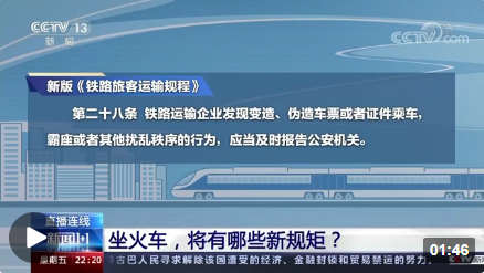 北京交通大学交通运输学院运输管理工程系主任 魏玉光:其实很多年前就有霸座的行为存在,但是当时法律环境或者旅客的法律意识没有现在这么强。现在在高铁上发生霸座事件,信息会迅速传遍国内,老百姓反响是很大的。这种情况下,老的《铁路旅客运输规程》中,没有报告公安机关这条,现在加上之后,再出现霸座行为,车上的铁路工作人员就可以依据这条法规及时报告给车上或者车站内的公安部门,对他及时进行制止,依法进行处置。另外,这条加进去之后,也会有一定的警示作用,让公民依法乘车。