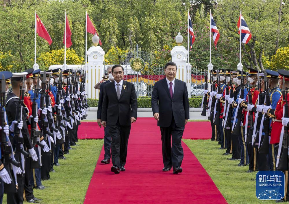 习近平指出,双方要像走亲戚一样常来往、多走动,在涉及彼此核心利益和重大关切问题上继续相互坚定支持。双方要落实好未来5年《中泰战略性合作共同行动计划》,统筹推动各领域合作取得更多成果。要有效对接各自发展战略,推动高质量共建“一带一路”不断取得新成效。双方要加强投资、贸易、旅游、基础设施、产业园等传统领域合作,同时不断培育新增长点,推动数字经济、新能源汽车、科技创新等新领域合作取得积极进展。要加快中老泰三方铁路合作,积极推进“中老泰联通发展构想”,重点加强基础设施“硬联通”,做好物流通关“软联通”,扩大泰国优质农副产品输华。中方愿同包括泰国在内的各方一道,高质量实施《区域全面经济伙伴关系协定》,让这一全球最大自贸区安排释放更大红利。加大打击跨境犯罪,深化追逃追赃合作。加强教育、医疗、扶贫等民生领域合作,通过多种方式交流减贫发展经验,推动两国扶贫合作走深走实,办成、办好一批贴近群众、服务基层的实事。要加强青年交流,使两国人民心更近、情更深,丰富中泰命运共同体的人文内涵。