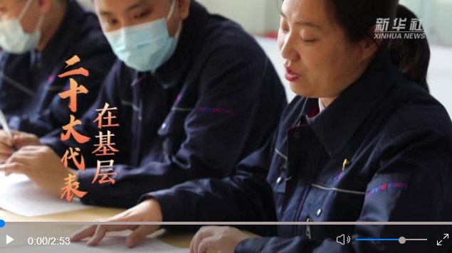 党的二十大闭幕后,苗秀回到企业,第一时间与同事们分享自己的参会感受,带动身边的党员群众掀起学习热潮,贯彻党的二十大精神。
