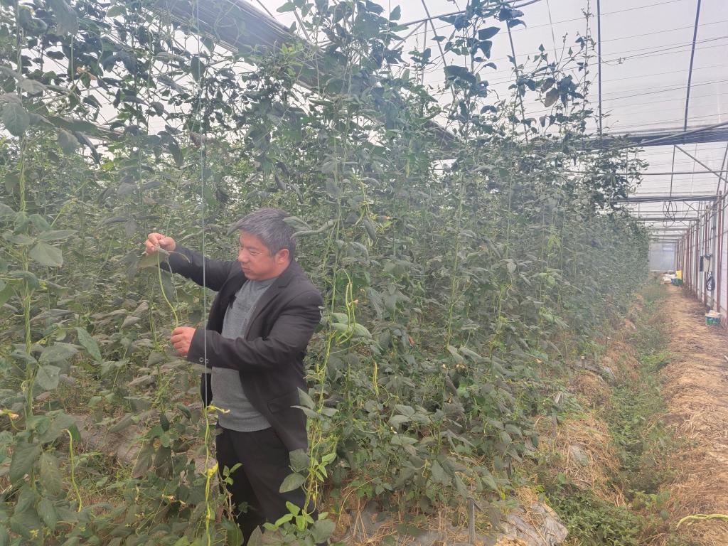 杨利明在大棚内查看蔬菜长势。新华社记者周勉 摄
